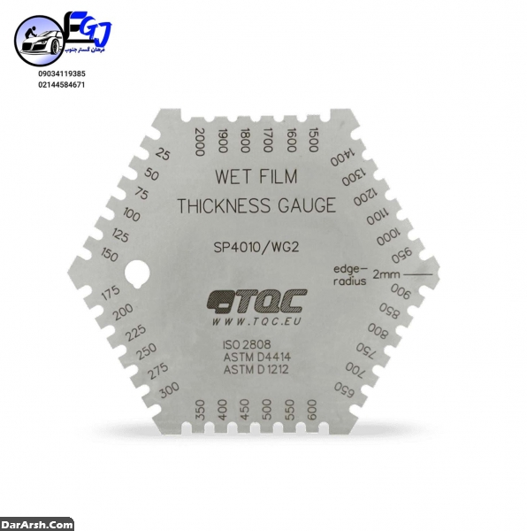 ضخامت سنج رنگ تر یک گیج چند وجهی میباشد که جهت محاسبه ضخامت رنگ و پوشش فیلم قبل از مرحله خشک شدن جهت محاسبه میزان ضخامت رنگ اعمال شده استفاده میگردد.بدین ترتیب که بعد از تماس با سطح رنگ شده میزان دندانه هایی که به رنگ اغشته شده باشند ضخامت را نمایش میدهند.