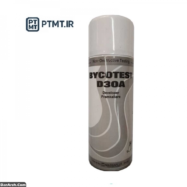 اسپری دولوپر BYCOTEST مدل D30A یک آشکارساز با پایه حلال است که در روش تست مایع نافذ (PT) برای نمایش ترک‌ها و عیوب سطحی استفاده می‌شود. این اسپری با ایجاد لایه‌ای سفید و مات، زمینه‌ای کنتراست‌دار برای دیده شدن نشانه‌های عیب فراهم می‌کند. خشک شدن سریع، حساسیت بالا و سازگاری با استانداردهای بین‌المللی از ویژگی‌های مهم آن است.